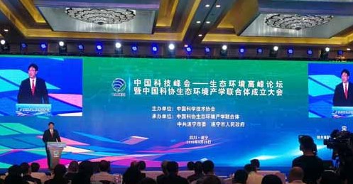 9月26日,中国科协在四川省遂宁市举办了“生态环境联合体”成立大会。中国科协党组书记、常务副主席、书记处第一书记怀进鹏,中国环境科学学会理事长、生态环境部副部长黄润秋,四川省副省长彭宇行,中国工程院院士、北京大学教授张远航、中国工程院院士、生态环境部环境规划院院长王金南、中国光大国际有限公司行政总裁王天义、亿利资源集团有限公司常务董事、执行总裁尹铖国出席大会。会议由中国科协党组成员、书记处书记宋军主持。