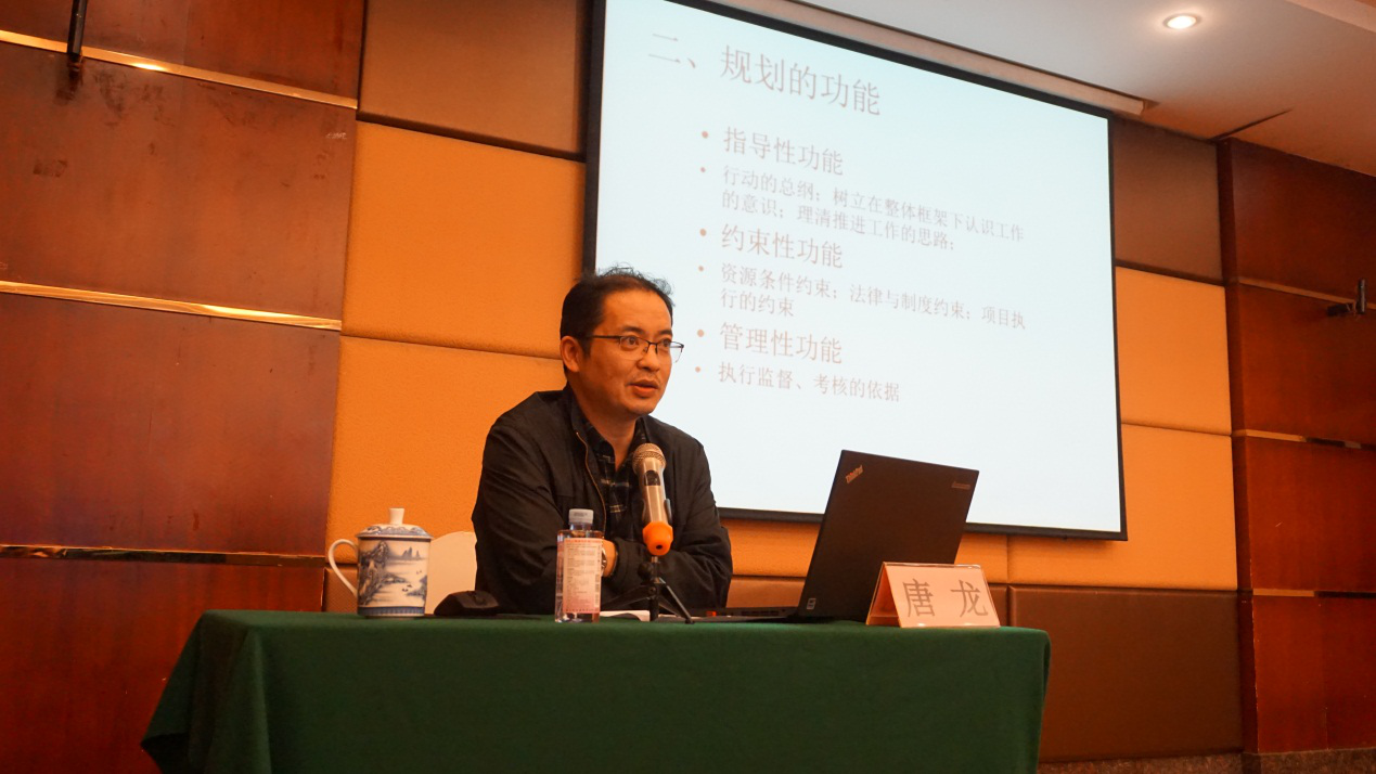 唐龙教授以地方经济社会发展规划编制的几点思考为题,围绕规划、策划与计划的关系,重点分析了规划的功能、思维、类型、依据、准备、设计、亮点、评价,提出了自身对做地方经济社会发展规划的深刻体会。