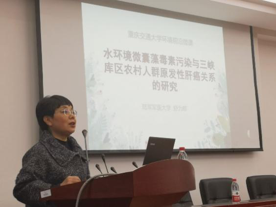报告会上舒为群教授做了题为“水环境微囊藻毒素污染与三峡库区农村人群原发性肝癌关系的研究”的报告。舒教授从团队研究概况、项目研究背景、藻毒素与三峡库区农村儿童肝损伤关系研究、藻毒素与三峡库区农村成人原发性肝癌发生关系研究、研究工作产出和对青年学者的建议六个方面进行介绍。报告内容专业性强、成果意义大,在获得专业知识的同时也为师生们要注重环境健康风险提了醒。舒教授从容的气质、渊博的知识和严谨的科研态度,都给师生们留下了深刻印象。
