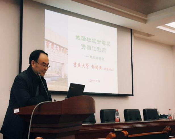 彭绪亚教授做了题为“生活垃圾分类及资源化利用——挑战与展望”的报告。彭教授围绕“生活垃圾分类”展开,重点从为什么要进行垃圾分类、怎样进行垃圾分类及垃圾分类后怎样管理来进行。彭教授亲切和蔼,知识博渊,详细地讲解使师生对垃圾分类与处理领域有了更深入认识。