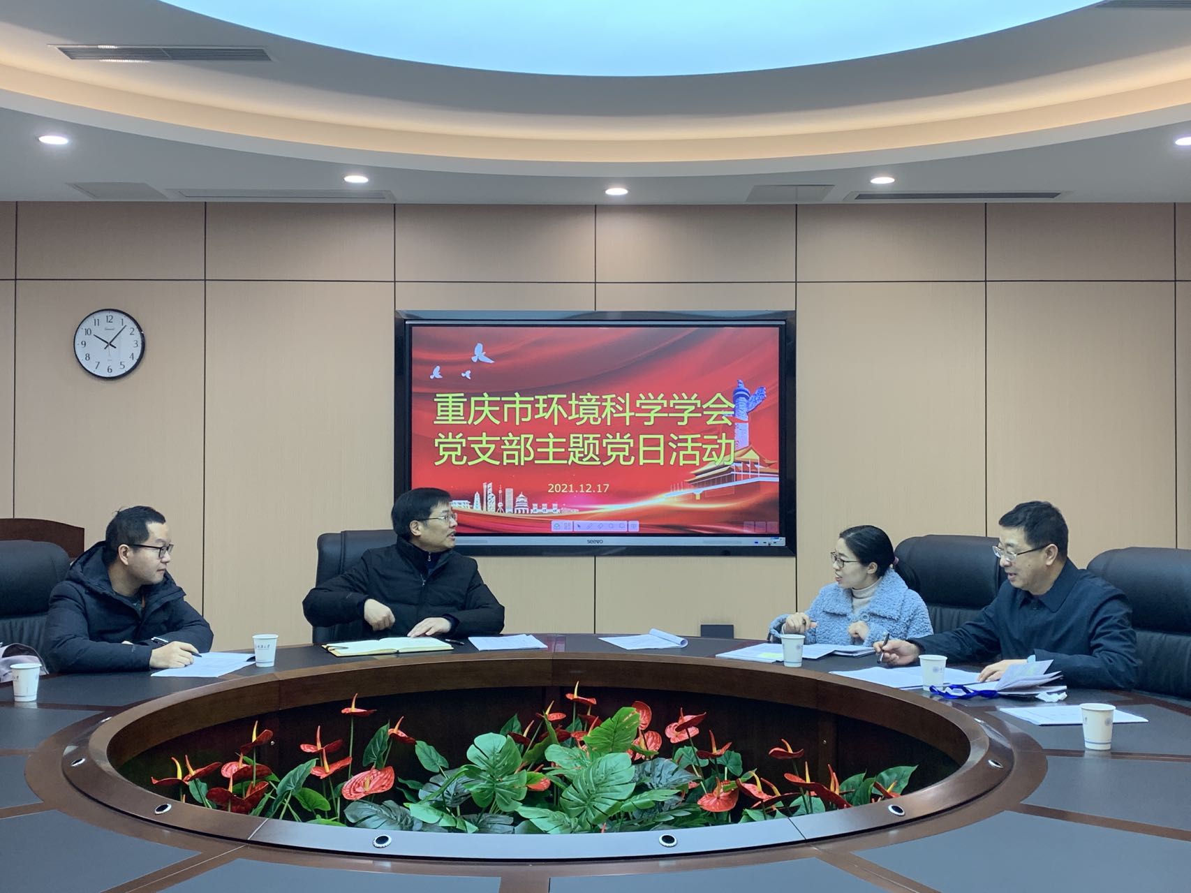 12月17日,市环境科学学会党支部在重庆大学环境与生态学院218会议室开展主题党日活动,会议由党支部书记方俊华主持,何强理事长带领大家学习了党的十九届六中全会精神、重庆市第五届委员会第十一次全体会议精神等。