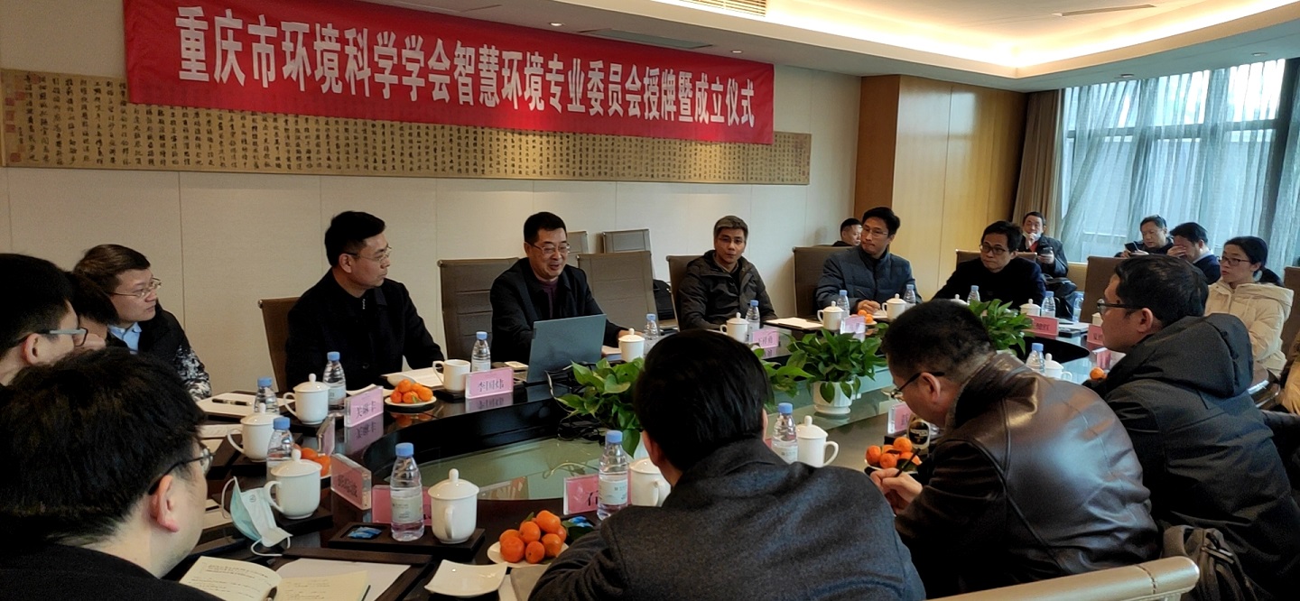 2月25日下午,智慧环境专业委员会成立暨授牌仪式会议在两江假日丽呈华廷酒店举行。重庆市生态环境科学研究院科技管理科科长蔡锋、重庆市环境科学学会秘书长方俊华、重庆市市政设计研究院副总工敖良根、张靖强出席会议并讲话。会议由重庆市渝创翰蓝智慧水务研究有限公司执行董事李国炜主持,智慧环境专委会全体委员参加了会议。