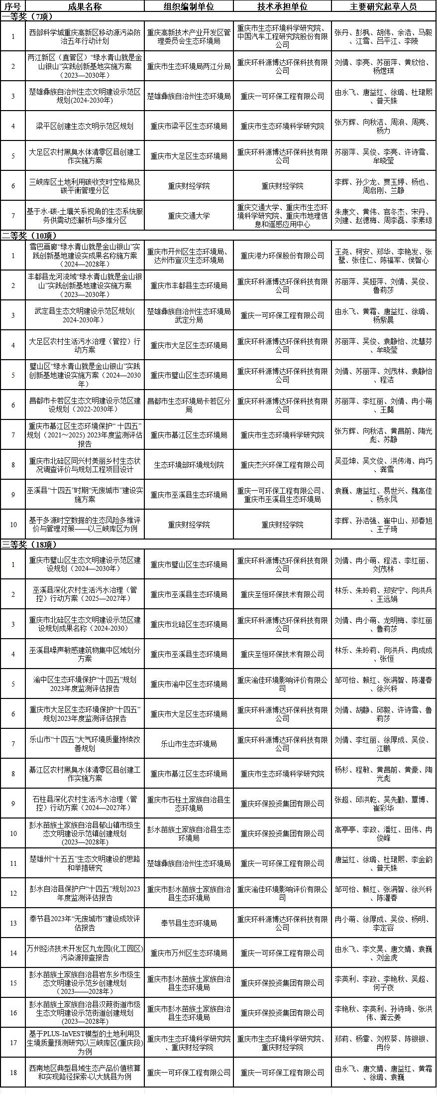 重庆市2025年度生态环境保护规划优秀成果拟获奖名单