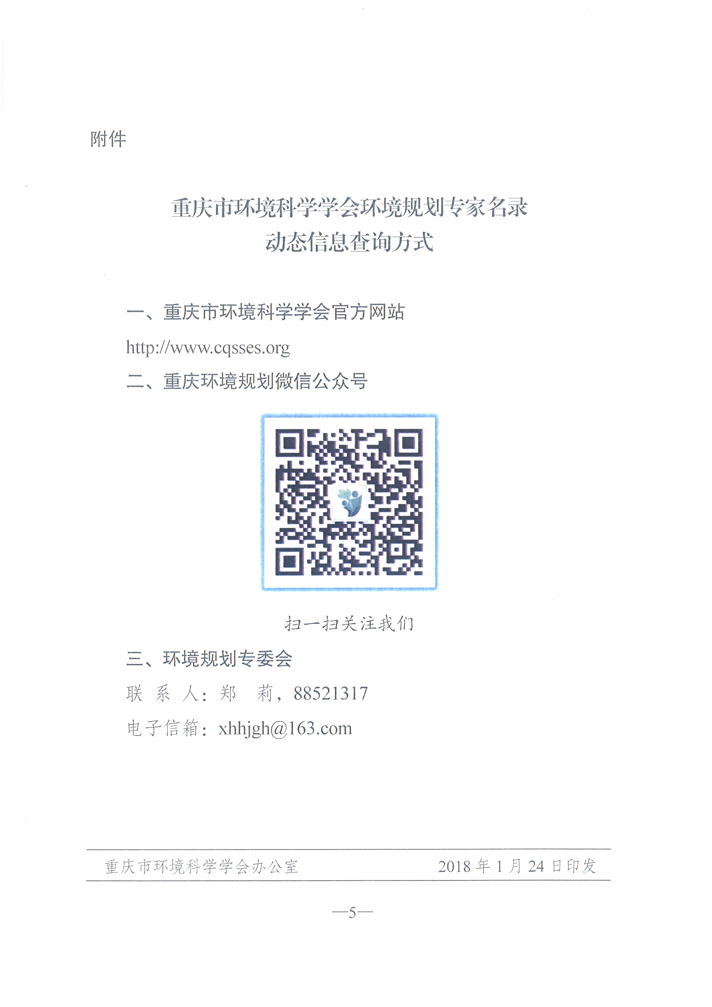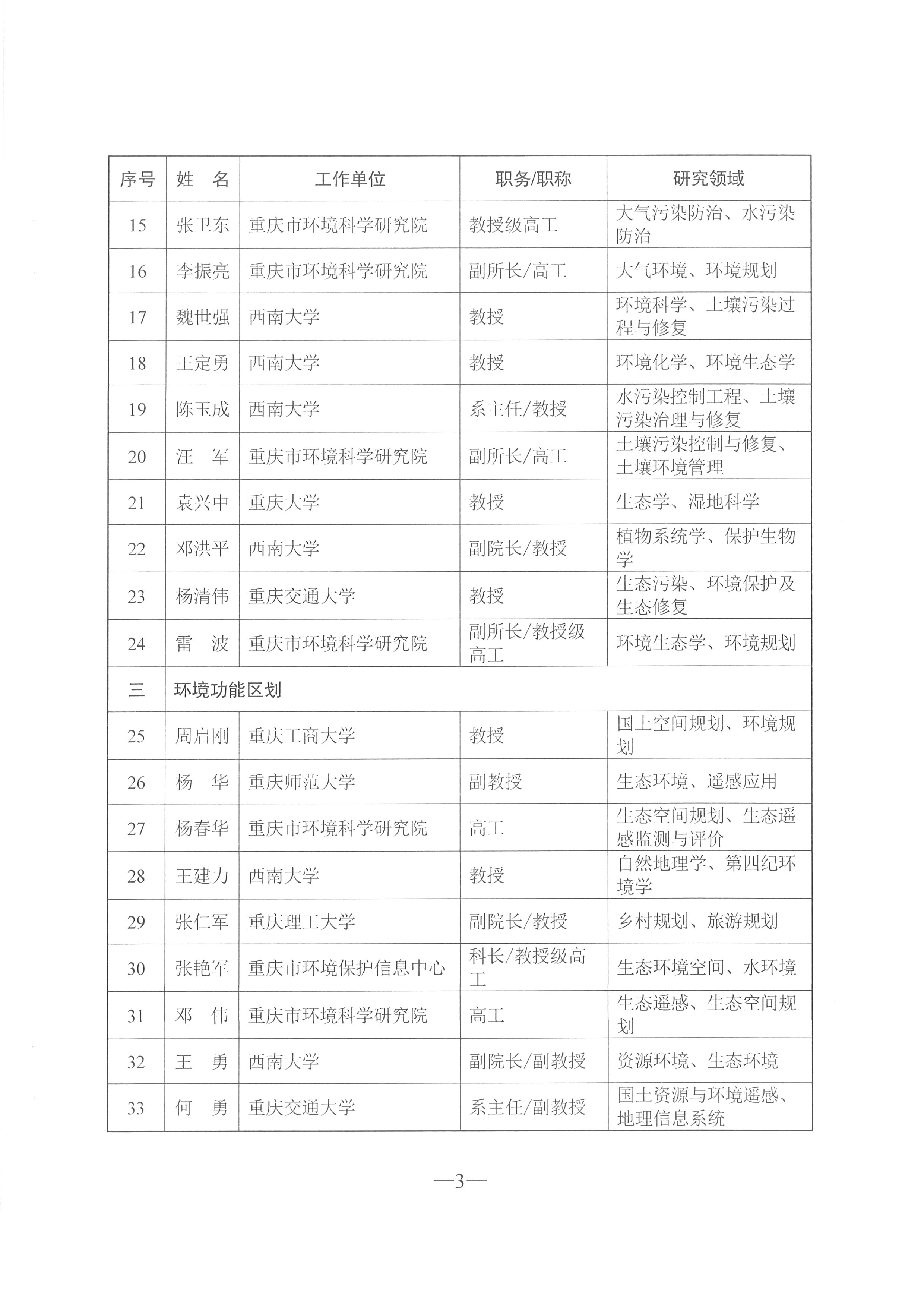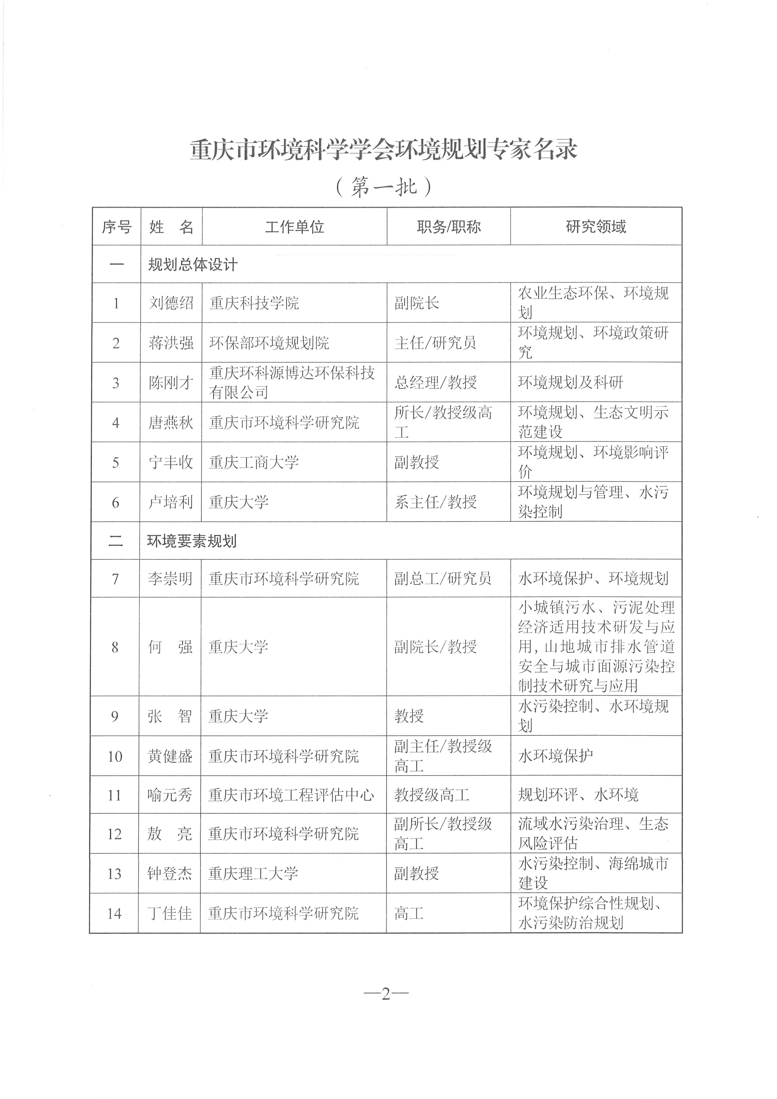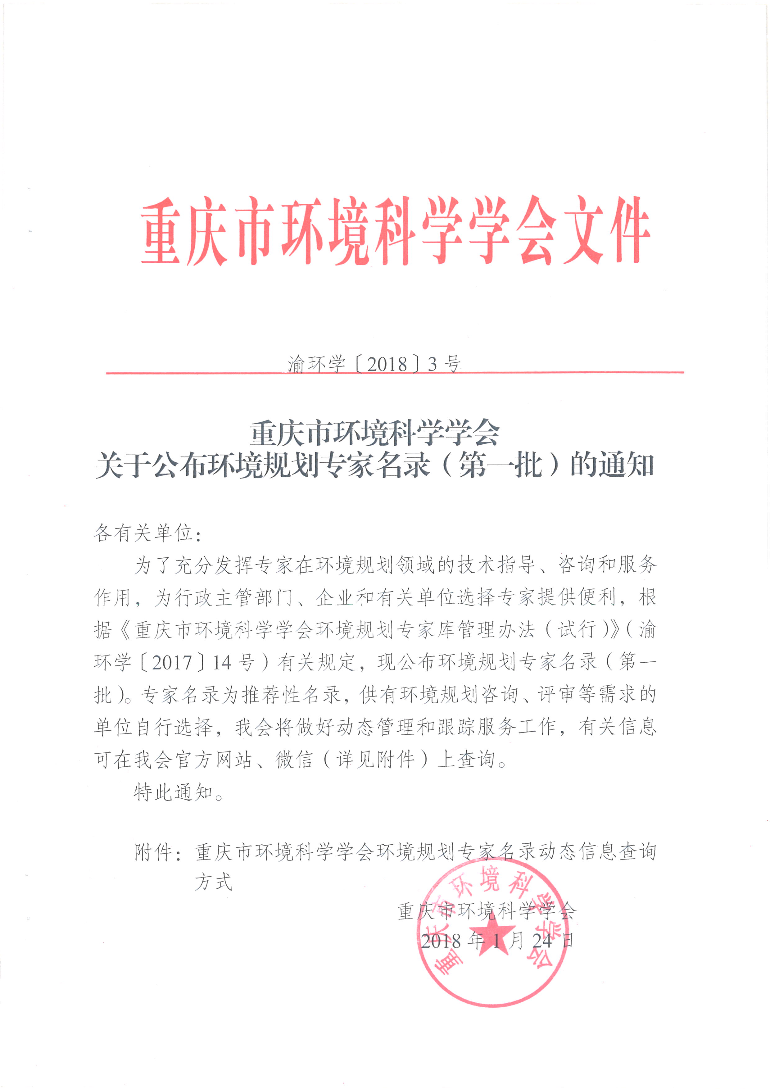 重庆市环境科学学会关于公布环境规划专家名录(第一批)的通知