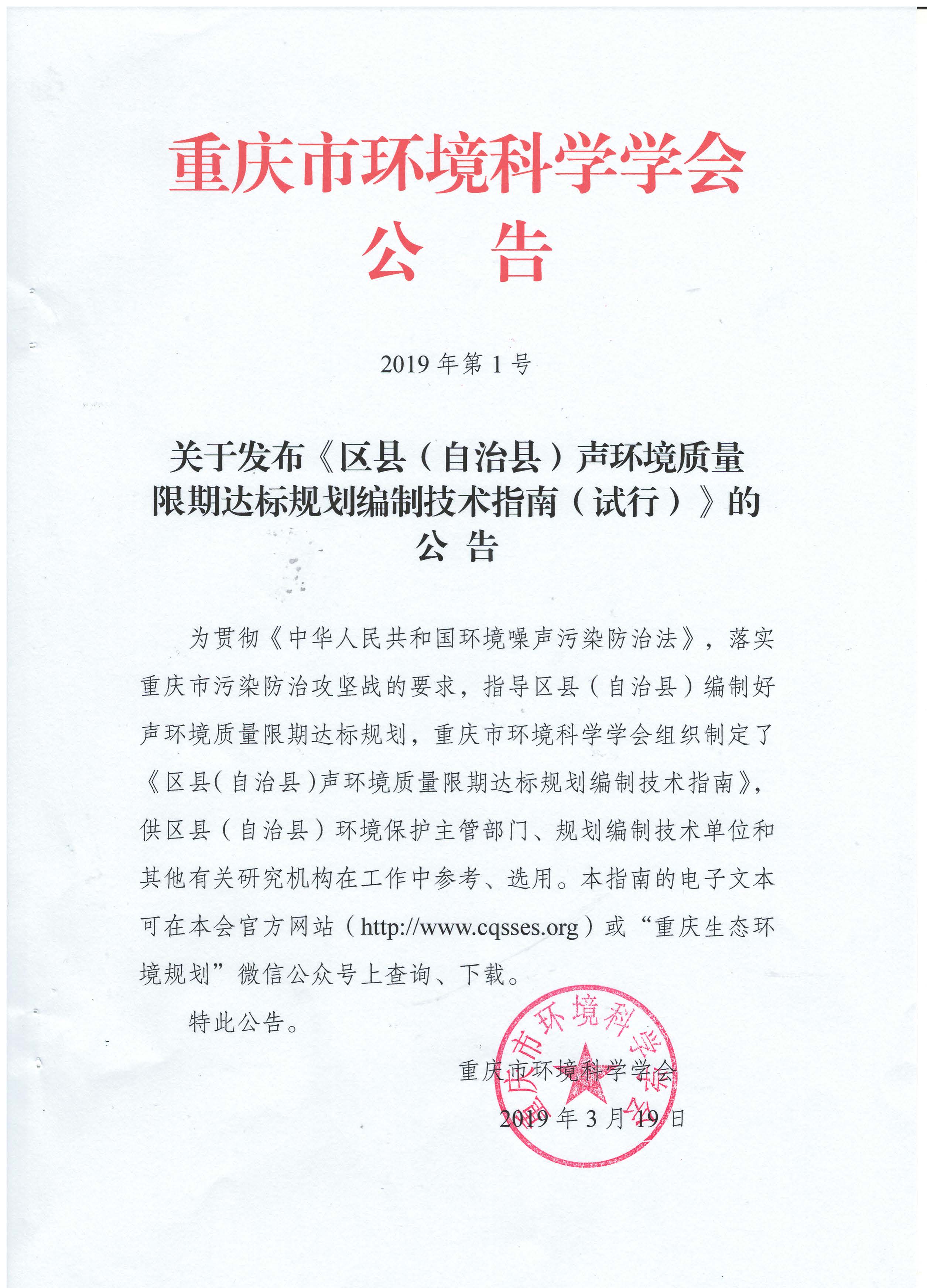 关于发布《区县(自治县)声环境质量 限期达标规划编制技术指南(试行)》的公告
