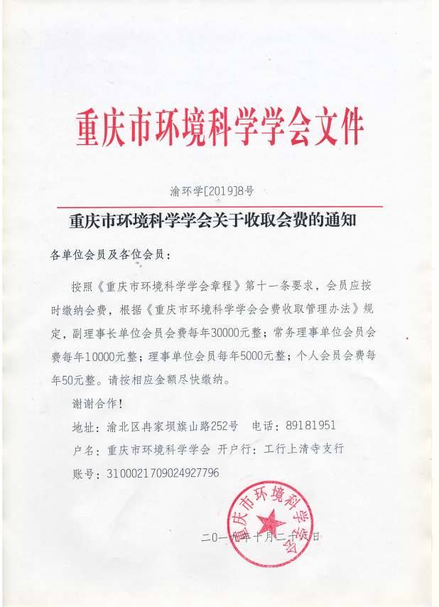 重庆市环境科学学会关于收取会费的通知