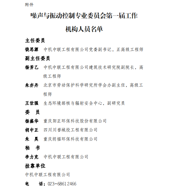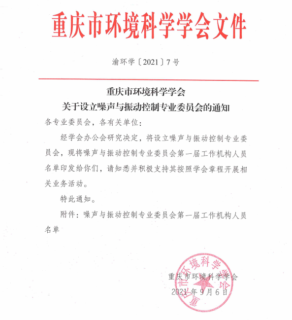 关于设立噪声与振动控制专业委员会的通知