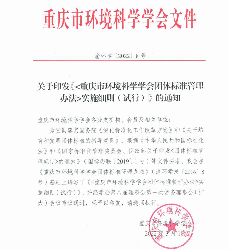 关于印发《重庆市环境科学学会团体标准管理办法》实施细则(试行)的通知