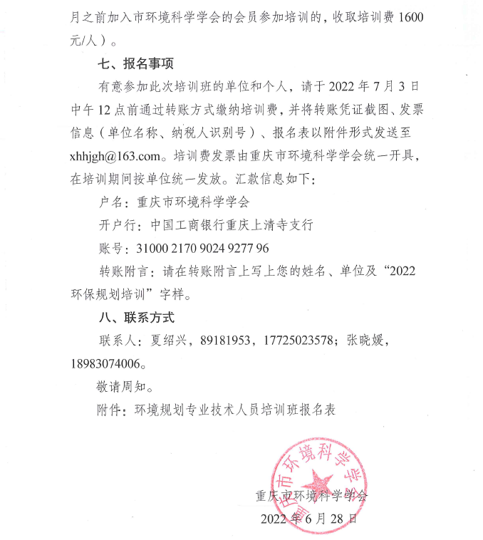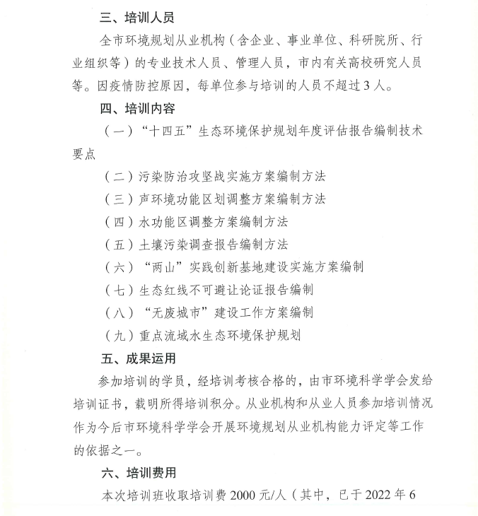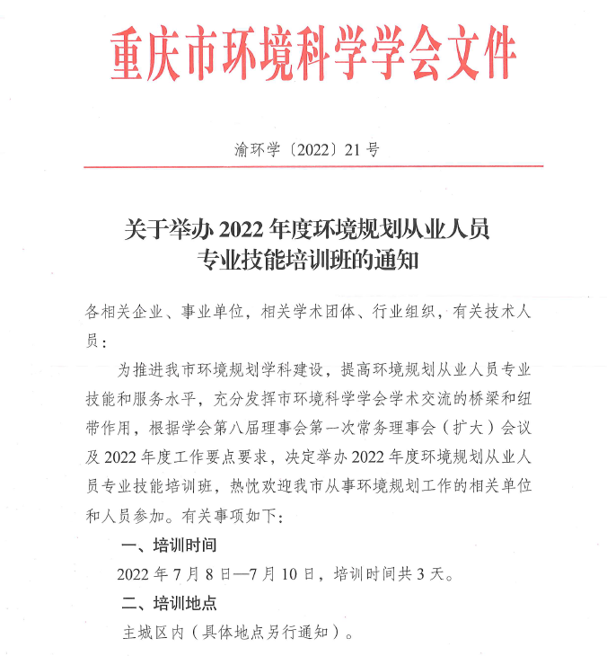 关于举办2022年度环境规划从业人员专业技能培训班的通知