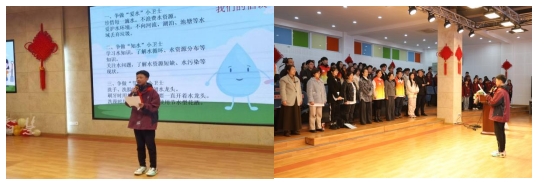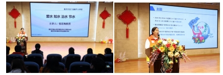 授书仪式结束后,重庆交通大学河海学院杨延梅教授向在场师生做了“爱水、知水、治水、节水”主题科普讲座,主要从世界水日的背景与今年世界水日、中国水周的主题;水资源的定义;我国的水资源现状;污水的常规处理技术与治水的政策法规;生活中浪费水的现象及爱水节水方法;介绍了水环境保护、冰川研究、饮用水安全体系建立等方面的卓越科学家代表。同时为大家分享了“水资源及水危机”与“冰川消融及全球变暖”相关视频,使大家更加深刻意识到保护冰川、珍惜水资源、节约用水、践行绿色低碳生产生活方式的重要性。