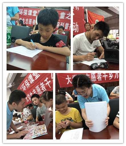 在报告结束之后,参与活动的人们都认真填写了问卷。之后志愿者们还带领孩子们进行了“节水小游戏”的活动,小朋友们踊跃的参与到活动当中,以“节水”为理念设计的小游戏让孩子们在玩耍的过程当中明白了水资源的可贵,同时小游戏获胜的一组,也获得了志愿者们准备的一张张小贴贴画。参加本次活动的大学生志愿者有:黄耿博、王祥、白超、王黎阳、谭子其、罗云荣、颜渝森、覃献渝、尹捷、王建鑫、何阳、高玮、吴彦隆等;中、小学志愿者有:卢梓豪、傅鹏宇、何峻宇、余瑞豪、余瑞杰等。