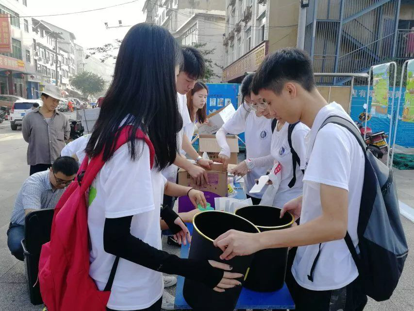 志愿者们一早将宣传的横幅挂好,将要展示的垃圾和经过回收利用而精心制作的垃圾桶摆放好。通过介绍垃圾分类的相关知识;与居民互动进行有奖问答;表演关于垃圾分类的趣味相声;介绍农田保护的相关知识等等寓教于乐的方式,不仅展现了资环学子的睿智,立志改善环境的雄心,也更弘扬了改革创新的时代精神,从观众的眼神中不难看出大家对于垃圾分类有了新的见解。