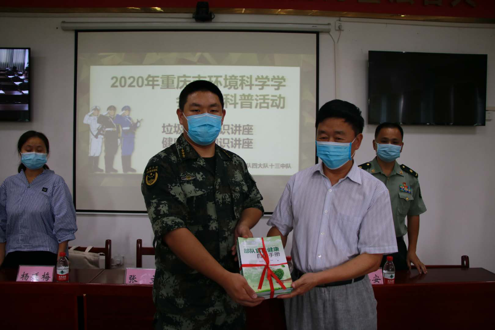 为配合重庆“无废城市”的建设,让绿色生态理念宣传覆盖面更广,深入推进科技拥军活动,重庆市环境科学学会理事长张文带领专家一行在2020年6月30日走进重庆武警第二执勤支队四大队十三中队开展了环保科普宣传活动。