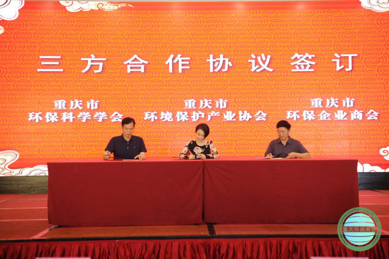 会上,市环境科学学会、市环保企业商会,市环保产业协会签订了三方合作协议,今后将加强合作,共同推进重庆市的生态环境保护工作及战略发展。