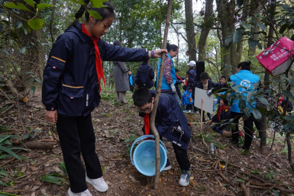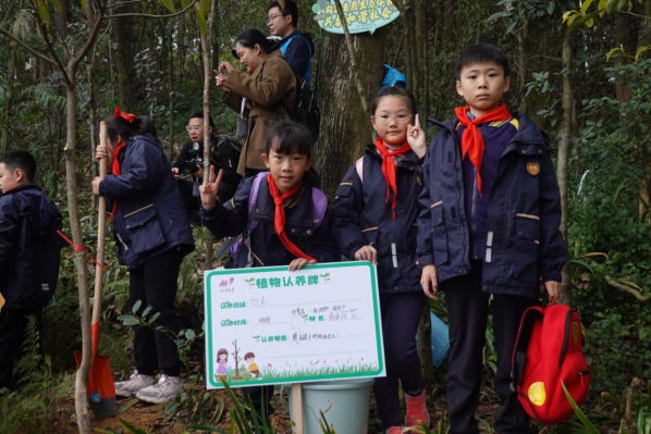 为积极践行“绿水青山就是金山银山”的生态文明理念,恰逢植树节之际,3月11日上午,由重庆市生态环境科普联盟成员单位——重庆南山植物园主办的渝港澳青少年自然探索“共爱自然・植绿南山”公益行动之“种自然・南山一棵树植树行动”开启,重庆市人民小学的同学们来到重庆南山亲手种下小树苗,许下自己的心愿。